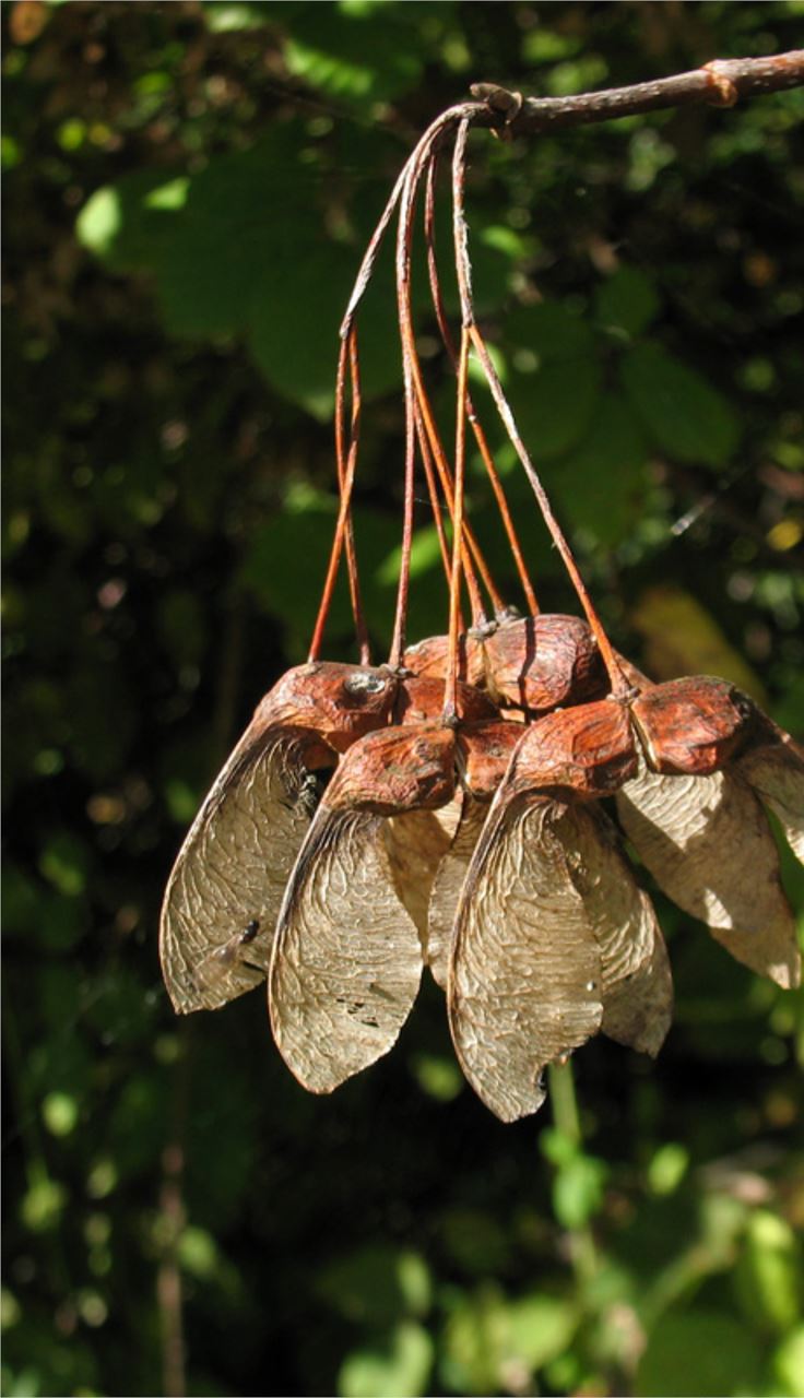 Il frutto è una samara di un colore verde tendente al rosa, costituita da due semi alati disposti in modo da formare un angolo retto, lunghi complessivamente fino a 2,5 cm, mentre i soli semi sono tondeggianti con un diametro di circa 1 cm